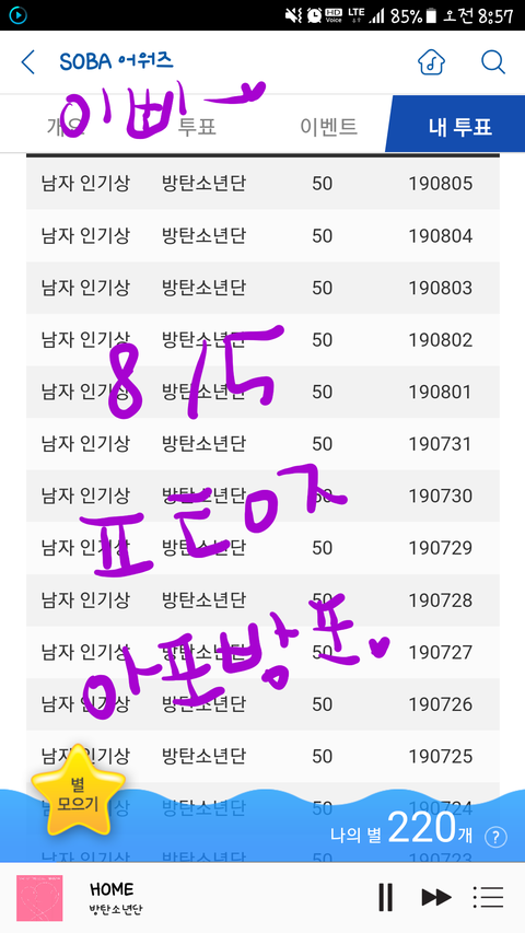 밤새 투표추이 올려준 이삐들 고마워!!