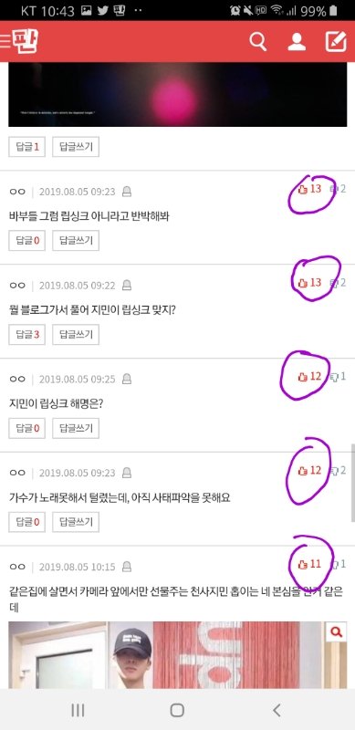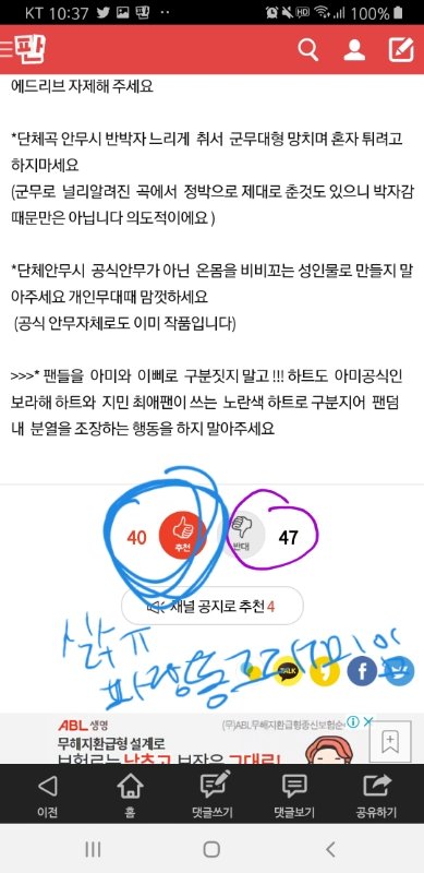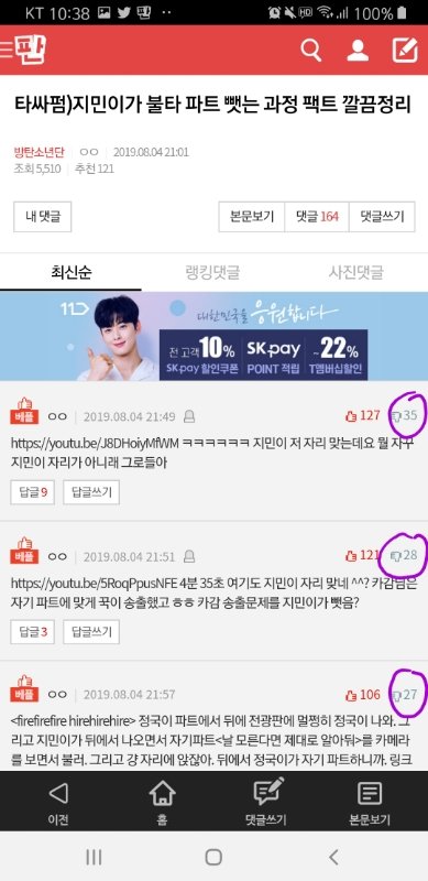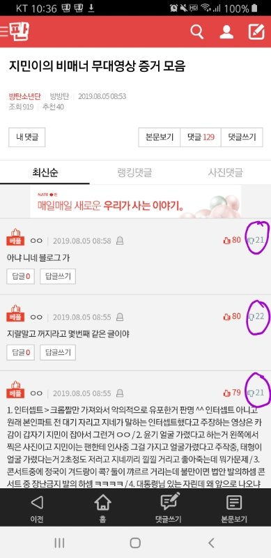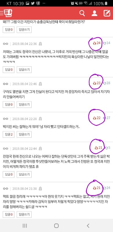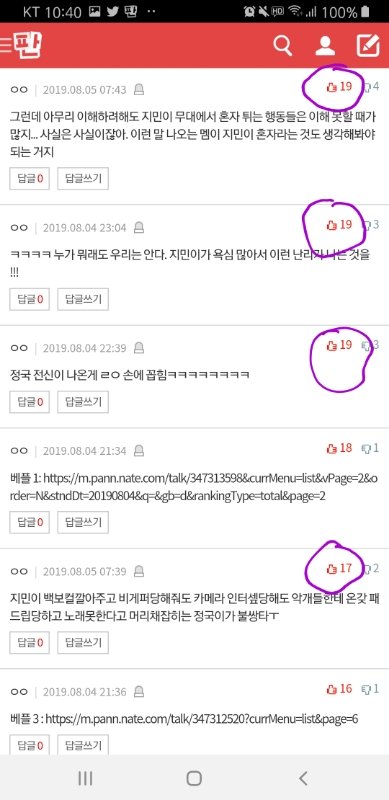 우선 아래캡처는 지금 지민이 까글 랭킹 댓글창이야