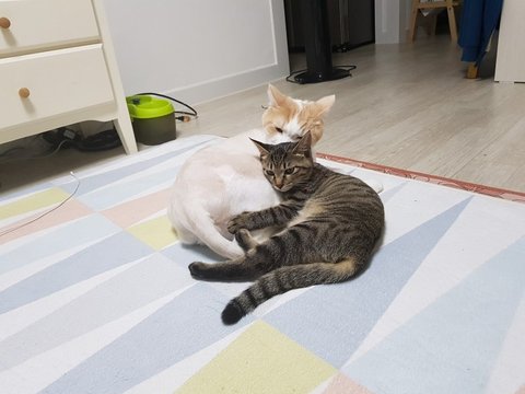 여름에 이렇게 붙으면 더워서 싫다옹.