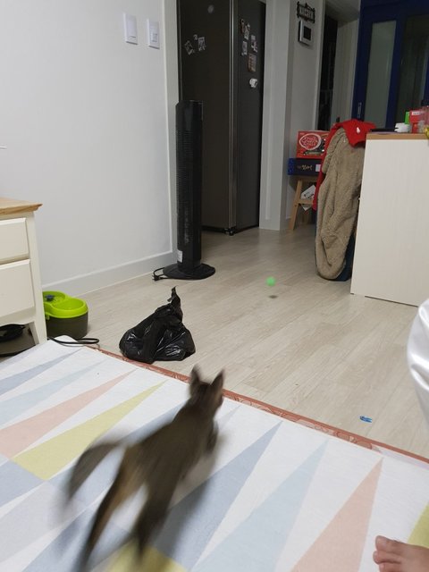 어릴땐 공만 물어왔지만 지금은 막대장난감도 물어온다옹.