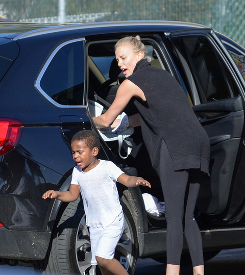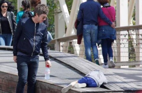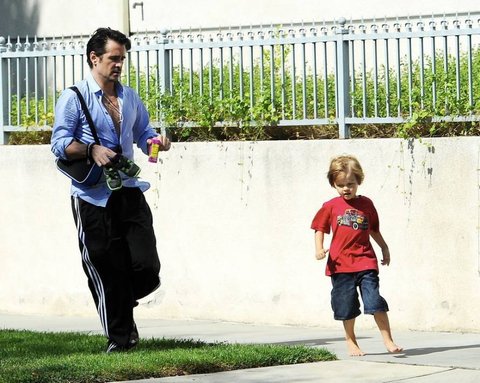 맨발로 뛰어다니는 아들 챙기는