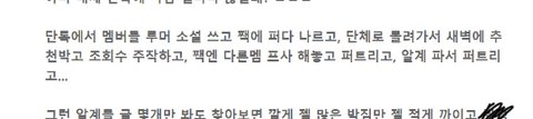 그리고 내가 뭐 박지민 보곤 개인팬덤이라하고 다른 멤들보고 악개라고 해서 나보고 또 찜앰이라는데 나 그냥 모든 악개 극혐하거든 나는 니네 덕분에 악개싸움이 이리 더러운지 처음 알았다 얼마전 박지민 악개들이 타가수 언급된 기사에 좌표찍고 총공했다는거 판에서 알았고 그때도 난 박지민 악개들 ㅈㄴ팼음 니네만 싫어하는게 아니라 악개 다 싫어함