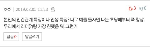 얌전한 친구들한테는 나도 얌전하게 말하는데 웃긴 친구들이랑 지낼때는 목소리 크고 개그캐로 바뀜 무슨 자아가 두개있는거 같음