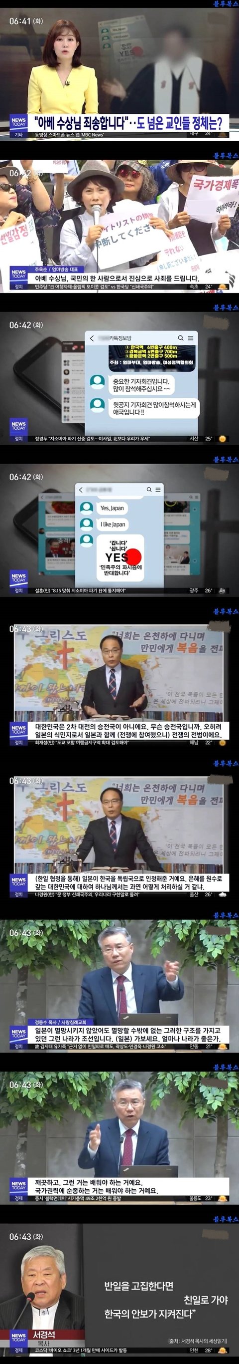 교회목사와 교인들 '아베수상님 죄송합니다.'