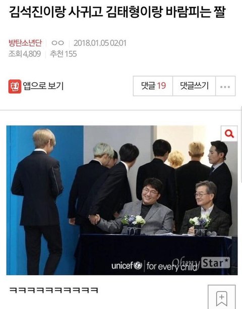 김석진이랑 사귀고 김태형이랑 바람피는 짤이야