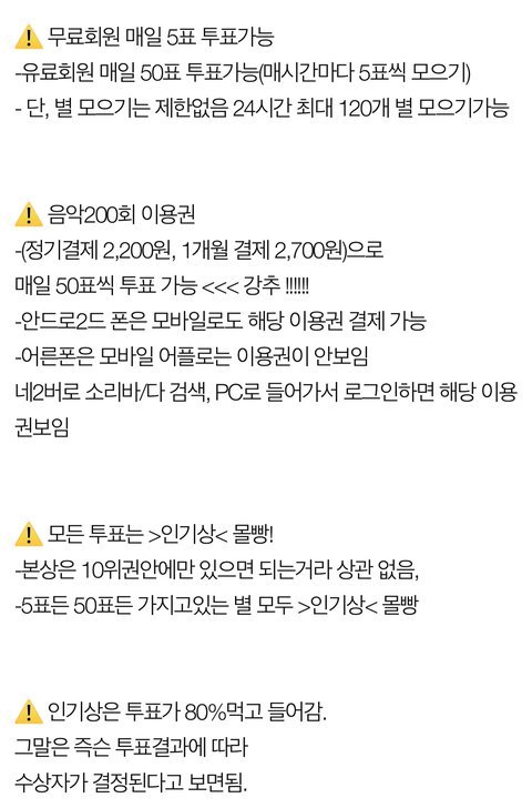 ✔ 본상이 아닌 >인기상<에 몰빵 주의