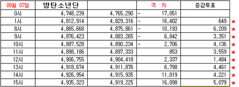 8/7 수요일 인기상 격차 그래프 3:00 PM