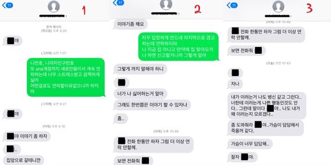 아래 사진에 보고싶다 가슴이 답답하다 이러한 문자를 보냈을 당시에도