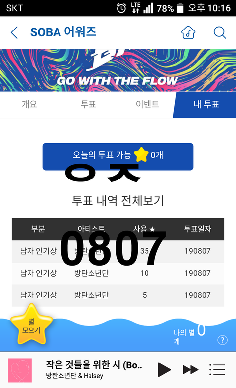 소바는 가입도 앱깔기도 시간마다줍는것도 귀찮아서 그냥있었는데어젯밤 영화보러갈때 옆사람에게 권유해보겠다는 이삐글을보고크으은 감동을받아쒀생각만이라도 오프에서 그게쉬운일이 아닌데ㅠ그깟 가입이뭐어렵다고과자도 잘사먹는내가 그깟2970원이 뭐라고ㅠ 우엥50개별주워서 방금오늘꺼완료함꼬옥 별잘주워서 50개씩 퉆하께!!!!