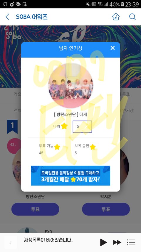 전에 내 본진 투표하는거 도와준 아미들 고마워서 나도 투표 도와주려고 앱 깔고 별 모았는데 왜 투표가 안됨?....