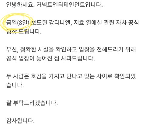 열애설 나가고 나서 젤처음 오피셜뜬 입장에서는