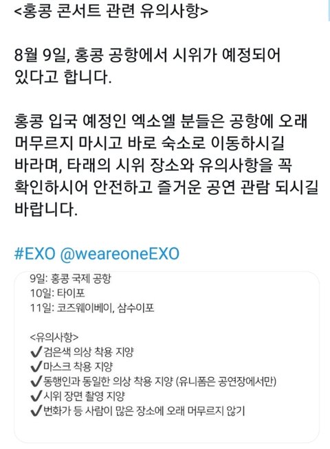 훵콩콘 가는 팬들 안전하게 갔다오고 슴은 애들 공항 경호원 500명 붙여라 애초에 이런공지 스엠이 올려줘야하는거 아닌가 싶지만...