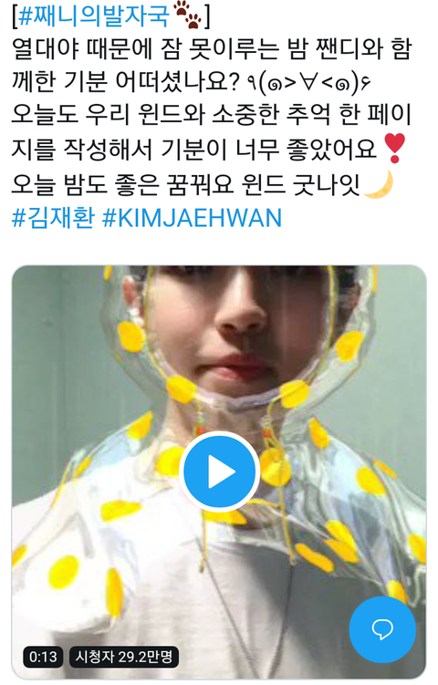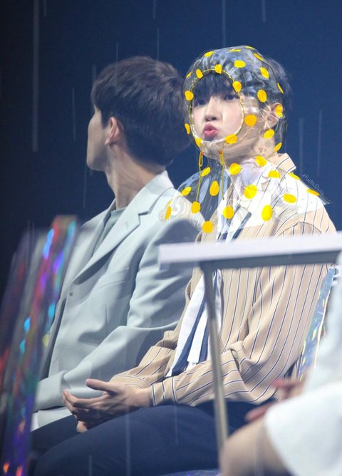 공트에 요즘 핫하다는 우비필터 쓰고 연습실에 물 샌다며 연기하는 째니 ㅋㅋ
