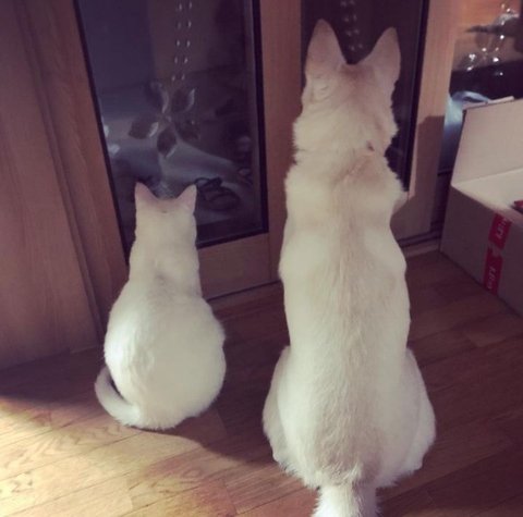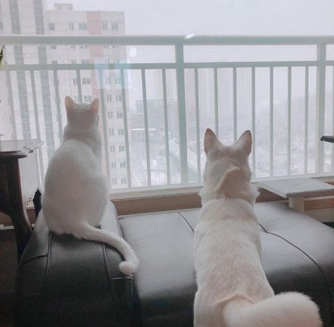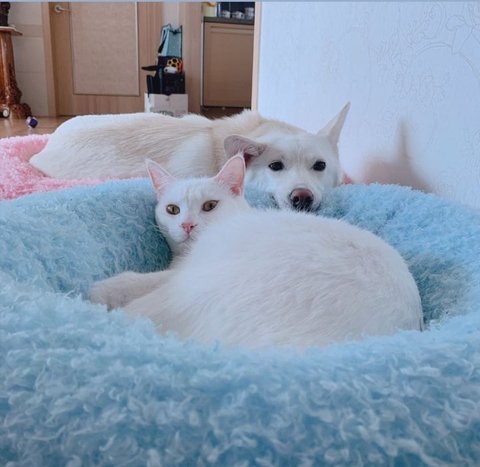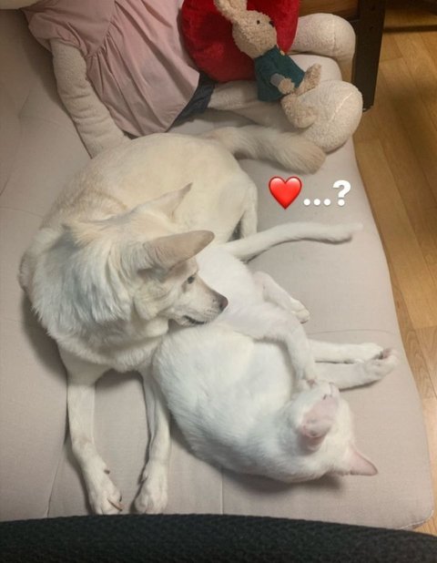 댕댕이랑 애옹이랑 같이 사진 찍은게 너무 사랑스러워서 퍼옴ㅎㅎ