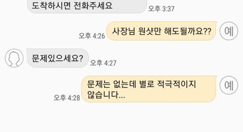 오피나 안마방인데 처음에 투샷금액내고 (처음에 한번 나갈때 한번)했는데 원샷하고나니 여자가 적극적으로 하지 않아서 원샷비용만 내고 가고 싶다는 말임 남편분 프로임 시간 보믄 낮걸이 한건데 어지간히 다니지 않은 이상 웬만한 남자들은 낮걸이 잘 안함