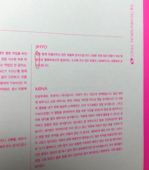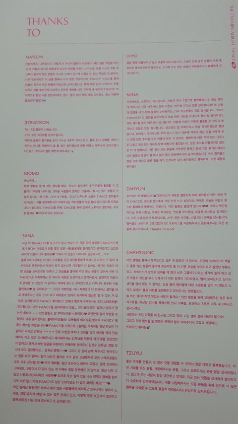 올해 Fancy 앨범 역시 '원스' , '팬' 언급X , 더군다나 타멤버에 비해 압도적으로 짧게 쓴 정도도 아닌 단2줄하고5글자
