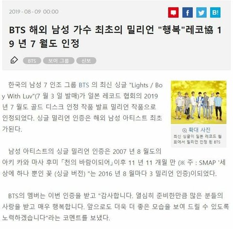 그리고 일본싱글앨범 밀리언인증 해외가수 최초라함