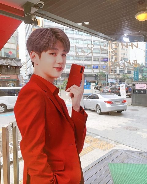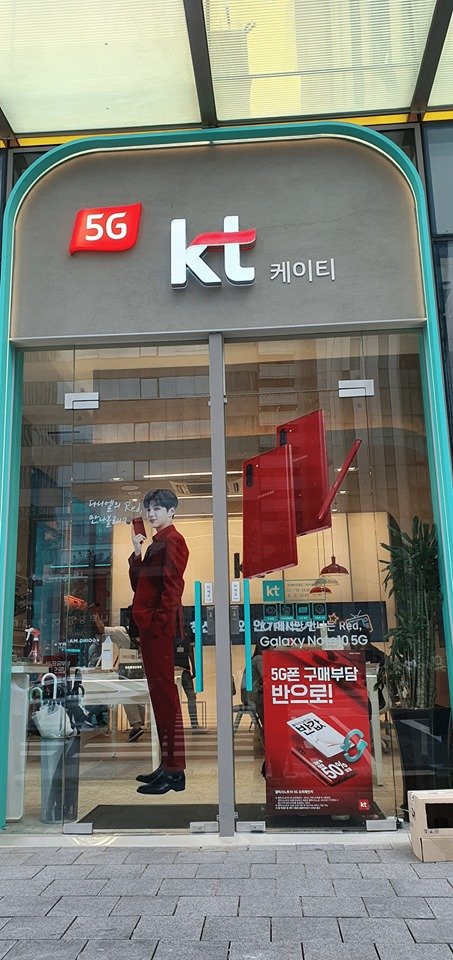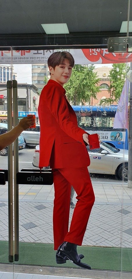 통신사 매장에 걸린 빨간 슈트 입은 강다니엘