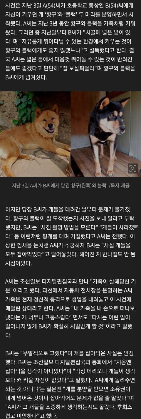 [단독]"시골서 잘 키울게"…40년지기 동창 반려견들 하루 만에 잡아먹은 50대 女