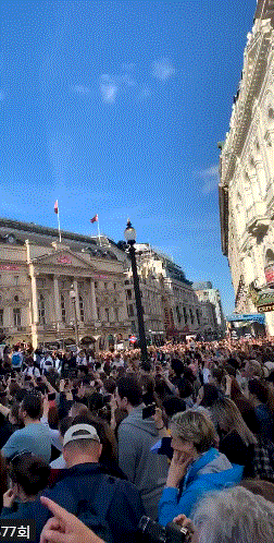 런던 방탄광고 보려고 모인 사람들이라던데...