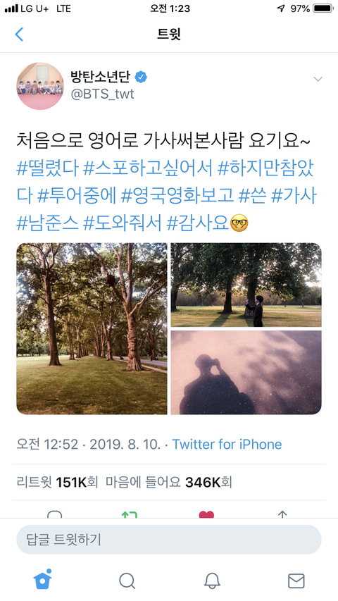 아까 뷔가 올린영상 노래 뷔 자작곡인가요..?? 노래 좋아서 원곡 찾아봤는데 없더라구요.. 진짜 자작곡이면 대박이네요 노래가 정말 너무 좋아서 소름돋았어요ㅠㅠㅠ