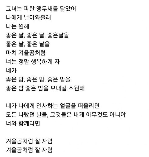 현재 전세계 트렌딩 1위 WinterBear ㅠㅠ 좋은 노래 나누고자 글 씀. 노래는 유튜브랑 사클에서 들을 수 있는데 바로가기 링크 두고갈게. 힐링받고싶은 사람은 꼭 들어봐! → 바로가기