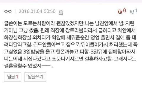 배가 살살 아파오는거야... 좀 불안했는데 설마... 이러면서 넘겼어근데 딱 버스 올라타는데 ㄹㅇ배에서 진동 울리는 느낌 나고 배가 미친듯이 아파오는거야;; 하필이면 자리가 없어서 일어나 있어야했음... 앉아있었어도 개오바였을텐데 일어나있고 버스 흔들리니까 진짜 나오기 일보직전이였음... 남자친구 말하는거에 계속 단답으로 말하고 막 식은땀 나니까 남자친구가 어디 아프냐고 물어봐서 쪽팔린거고 뭐고 살아야겠단 생각에 배가 너무 아파서 화장실가게 내리자함. 남자친구 당황해서 같이 다음 정류장에서 내림.내려서 도저히 못걷겠어서 정류장 의자에 앉아서 혼신의 힘을 다해 참음. 남자친구가 옆에서 조금만 참으라고 다독여주는데 그런건 안들리고 입에서 배아파 화장실 이 두단어만 반복함. 그때 진짜 땀 거의 폭포마냥 쏟아지고 있었음. 딱 일어나서 걷는데 아 진짜 못참겠고 너무 힘들었음. 중간에 계속 주저앉음... 신발 뒤로 똥나오는 곳 막고... 남자친구 어쩔줄 몰라하고... 상가 아무데나 들어갔는데 문잠겨있음... 남자친구가 열쇠받아올테니까 잠깐만 기다리라하고 뛰어감. 난 문고리 잡고 화장실 화장실만 반복함. 근데 남친이 안오는거임... 3분이 지나도 5분이 지나도... 그리고 5분이 넘어가자 내 한계는 무너지고 설사가 그냥 줄줄 나오기 시작함... 그리고 한 3분있다가 남친이 달려왔는데 키를 안빌려준다며 말하려다가 냄새를 맡고 지은 표정은... 진짜 너무 속상했음... 그자리에서 눈물 터져서 엉엉 우는데 남자친구가 괜찮다고 막 달랴주는데 죽고싶었어... 남자친구는 계속 그럴 수 있다고 괜찮다고 너 아픈게 자긴 더 속상하다고 그러는데 난 얘를 전처럼 못보겠어... 제발 어떻게해야할지 좀 알려줘...