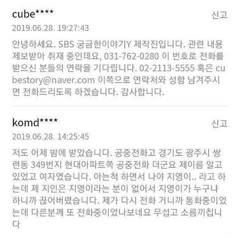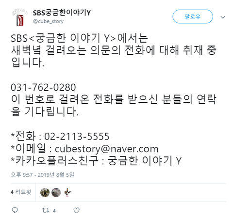 현재 '궁금한이야기Y'에서 제보받는 사건