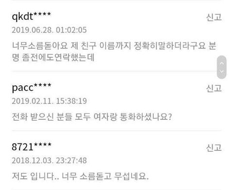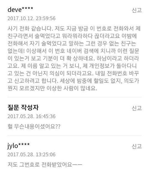 밤 12시에 아래 번호로 "나야 지영이..."라면서 전화옴
