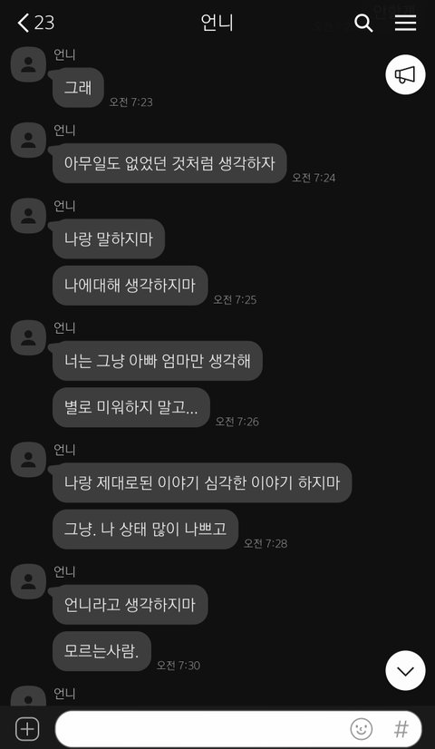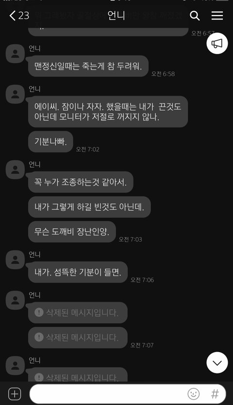 사진은 언니가 발작이 오고 어머니랑 싸우고.. 무슨 일이 생길 때 몇십개씩 저에게 보내는 카톡입니다.
