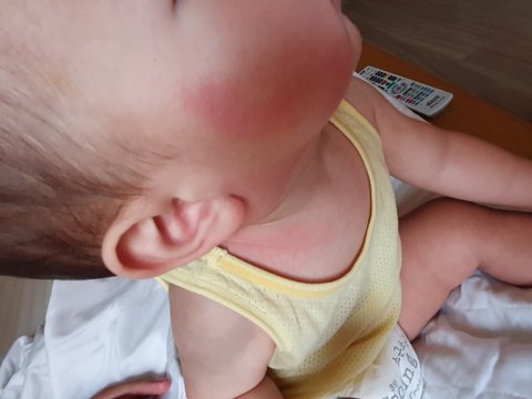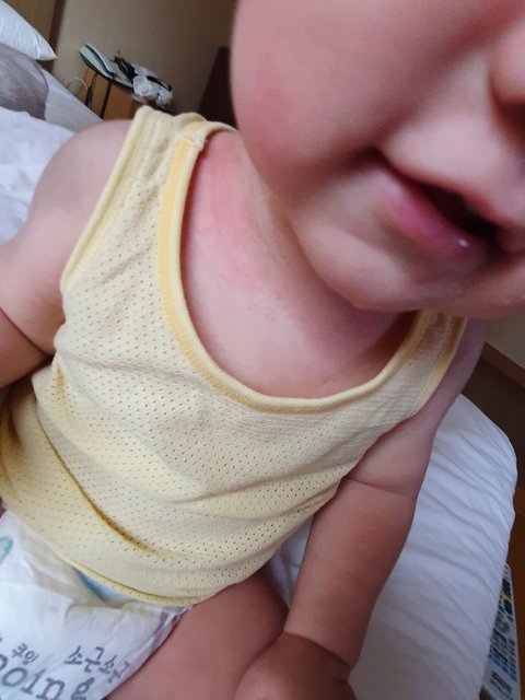 당연히 그상황에서 사진은 커녕 지금까지 땀띠한번 난적없고, 해지면 에어컨도 틀필요없을 만큼 열이없는 아이가 얼굴부터 배, 등, 엉덩이까지 발진이 시작됬습니다.