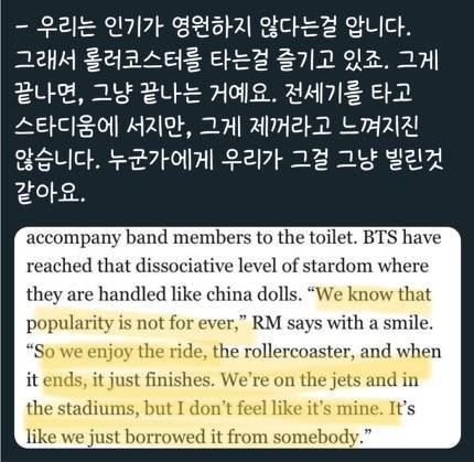 방탄소년단 리더 RM 속마음