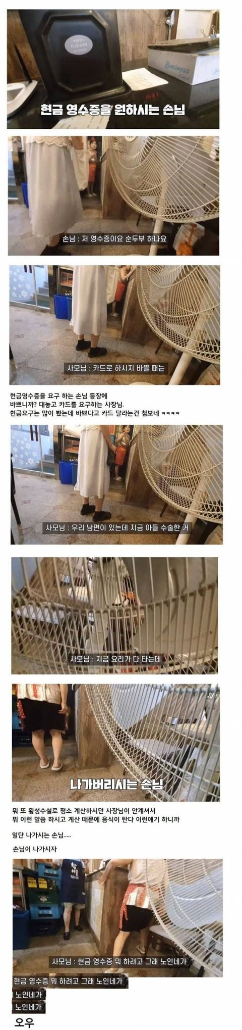냉장고에 쳐박혀있는 찌개그릇보고 구역질이 다나오더라. 지들도 냉장고에 며칠씩 짱 박혀있다가 물넣고 끓인 찌개 안먹을거면서 돈받고 파는음식을 저따위로 관리함. 저렇게 위생이 더러운데 눈에 안 보이는 곳은 더 할거임.