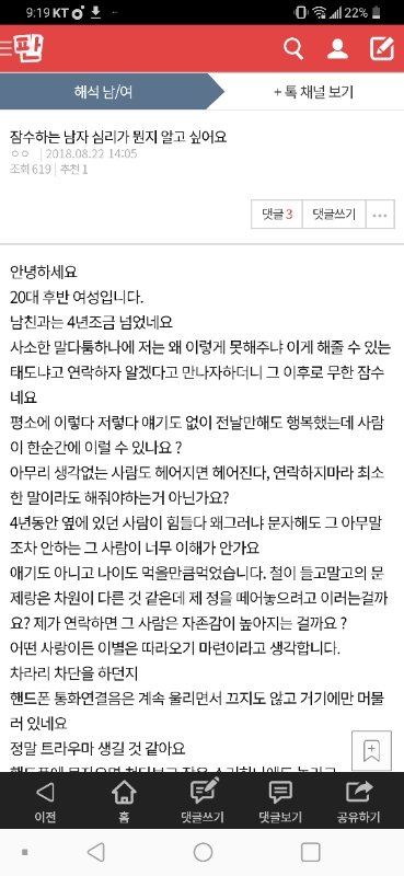 남편의 대화방식에 화가나는 매일인데 제가 예민한지 봐주세요. 제가 예민한 거면 마음을 고쳐보려고 합니다. 나: 오늘 날씨 덥다~~~ 남...