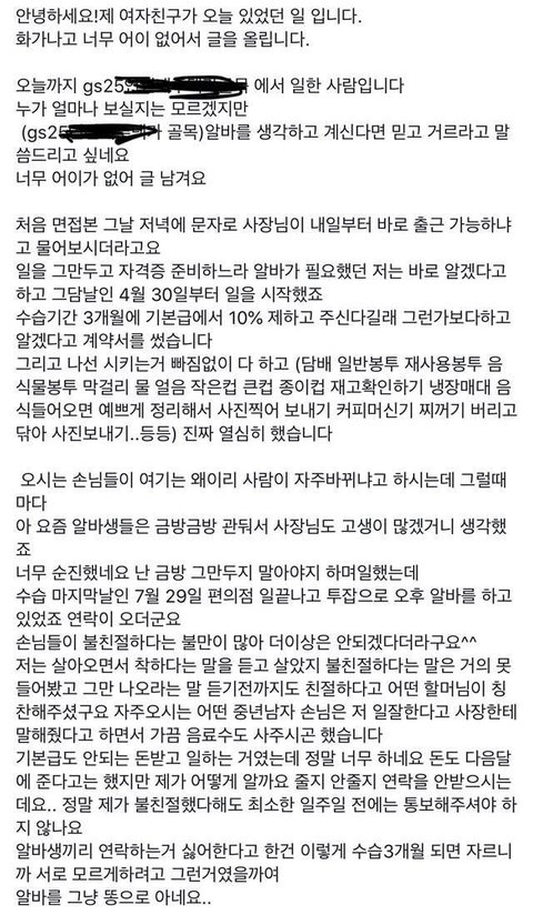 3개월마다 알바생이 바뀌는 이유 ㄷㄷ
