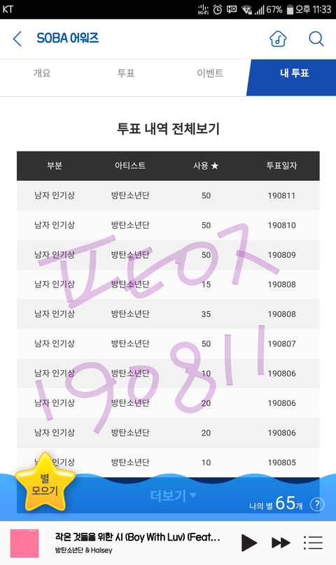 혹시 마주치더라도 보라해만 속삭이며 지나칠게