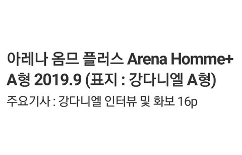 아레나옴므 강다니엘 커버2종에 인터뷰포함 16p래