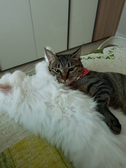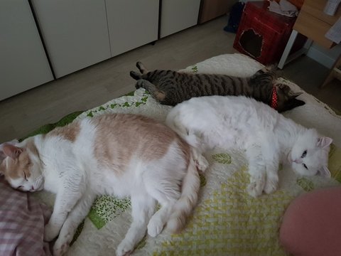 애들은 언제 클련지, 내 듬직한 덩치를 따라잡을 묘가 없다옹.