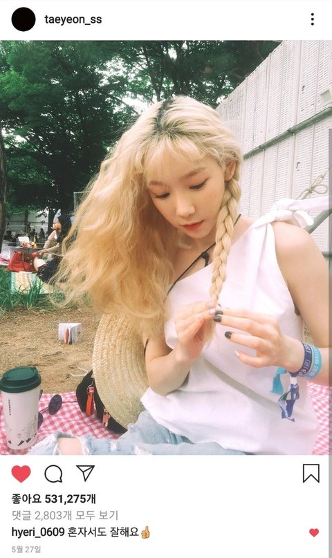 그 글을 본 태연이 하트 마구 날려주고
