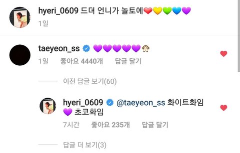 은 태연과 혜리 조합임 ㅎㅎ