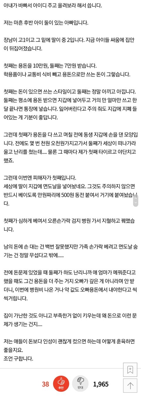 저렇게 감싸주면 나중에 가정폭력범이나 되는거지