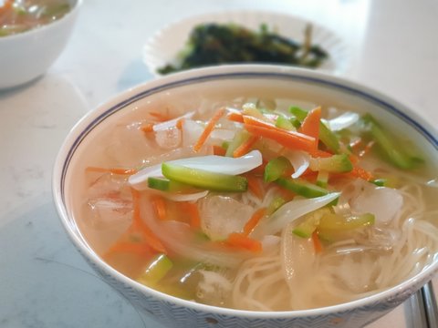 육수를 평소에 냉동실에 얼려놔서 가능합니다