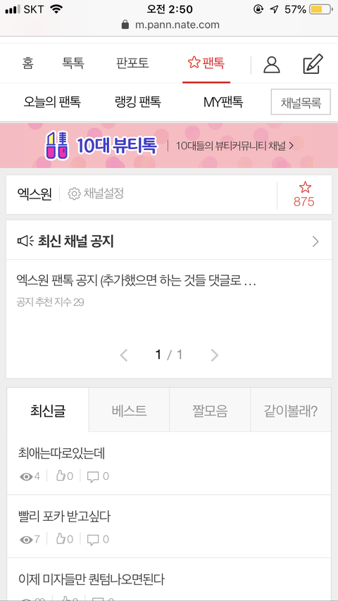 진짜 답답하다 어떻게 말해야 알아듣겠니~ 아니 차라리 엔터톡에 댓글부탁해 여기다 쓰던가 굳이굳이 프듀X 채널에 왜 써 니네 티저 뜬 거 얼굴합 하나도 안 궁금해 데뷔조 못 들어가고 생방에서 원픽 떨어진 앰들도 있는데 여기에 글 쓰고 싶냐... 스루할려고 해도 니네가 쓴 글이 몇개야 ㅅㅂ ㅋㅋㅋ 아니 엓원 팬 다 모여있는 팬톡 놔두고 여기다가 왜 쓰는거야 톡선 가고 싶어서 구래?? 너네 글 보면 우리 애 생각나서 속상하다 ㅅㅂ 진심으로 그리고 다른 그룹은 엔터톡 쓰는 거 뭐라 안하고 엓원 팬들한테만 지랄하냐는 댓글 있었는데 다른 그룹은 관심도 없고 신경쓰고 싶지도 않아 내가 좋아하는 맘도 싫어하는 마음도 없는데 뭐하러 신경 써 근데 엓원이랑 우리는 좀 아니지 않냐 .... ㅋㅋ 제발 그만 써 데뷔조 티저 뜬 걸로 몇 명 이상이 차지하는데 짜증이 나겠냐 안 나겠냐 니네 글 볼때마다 진심으로 속상하고 후회된다 와중에 위에 영업글 또 썼네 ㅅㅂ 후하후하 그리고 영업글이라면 ㅅㅂ 톡선 가고싶나 보네 하면서 생각이 들긴 해 근데 얼굴합 예능 나온다 이런 거는 .... 솔직히 팬톡 가서 얘기하는게 더 낫지 않냐