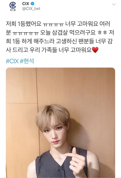 실제로 데뷔 후 음방 첫 1위한 날에 다같이 삼겹살을 먹었다고 함.