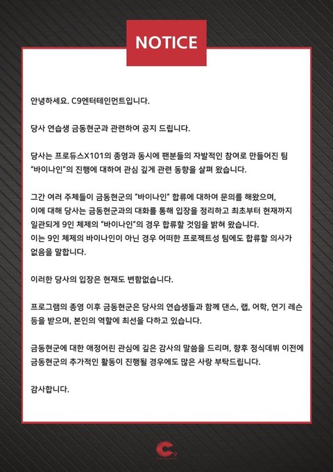 씨구가 바이나인 관련 공지 올림ㅋㅋㅋㅋㅋ