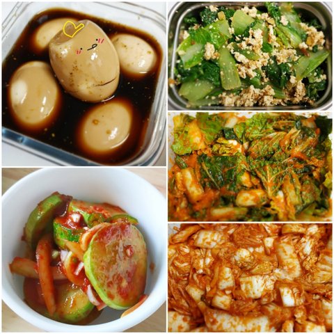 계란장조림, 얼갈이김치, 배추막김치, 오이무침