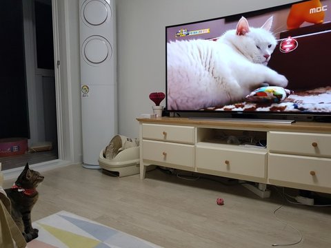치카는 티비에 빠져서, 티비를 너무 좋아하게 되어버렸다옹.