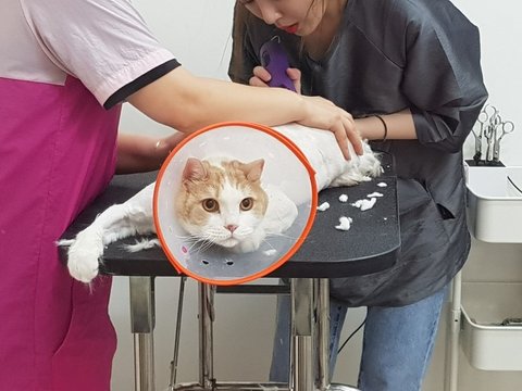 동물병원에선 마취 후 미용을 하기 때문에 누나가 맡기지 못하였는데