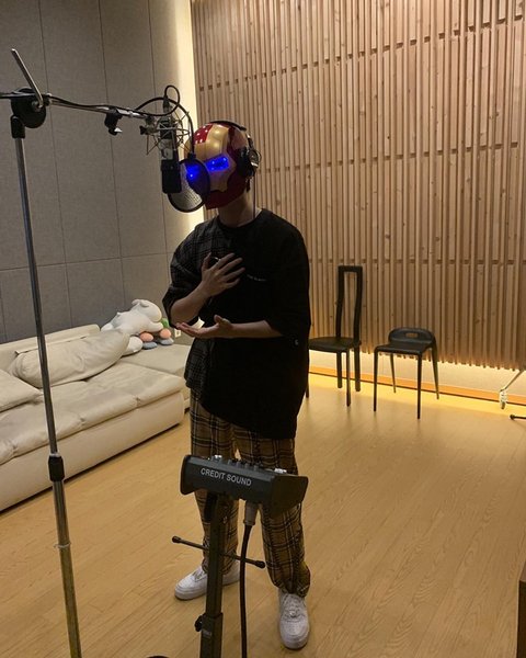 아이언맨 가면 쓰고 녹음하는 거 보니까