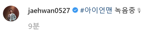 방금 SNS에 "아이언맨 녹음중"이라는
